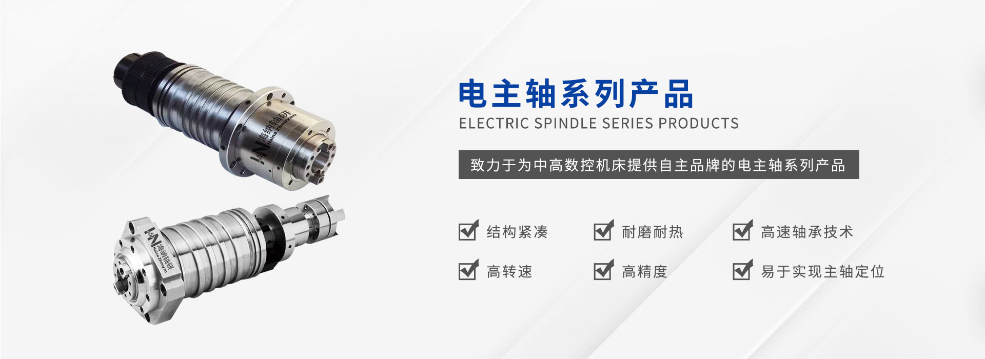 公司致力于為中高數(shù)控機床提供自主研發(fā)自主品牌的電主軸系列產(chǎn)品,通過堅持不懈的技術(shù)攻關(guān)和持之以恒的品質(zhì)管理,嚴格生產(chǎn)工序控制,售前售后的緊密跟蹤逐步形成一套完整成熟的業(yè)務(wù)體系。為不同類型機床提供主軸設(shè)計,現(xiàn)有數(shù)控車床主軸單元,數(shù)控車床電主軸、加工中 心電主軸及直聯(lián)機械主軸,走心車床電主軸,機械主軸,磨床電主軸,光伏主軸等系列主軸產(chǎn)品。
